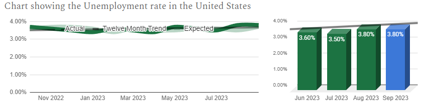 The US unemployment rate report measures the number of people actively looking for a job as a percentage of the labour force over a given month. The latest data covers the August period and was published on September 1st by the Bureau of Labor Statistics and the next version is out on November 3rd.
