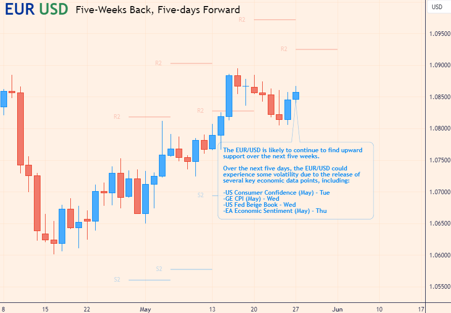 US Consumer Confidence (May) - Tuesday, 28 May: A weaker-than-expected reading could weigh on the USD and provide some support for the EUR/USD.