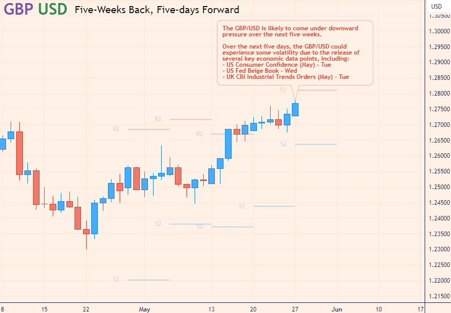 US Consumer Confidence (May) - Tuesday, 28 May: A weaker-than-expected reading could weigh on the USD and provide some support for the GBP/USD.