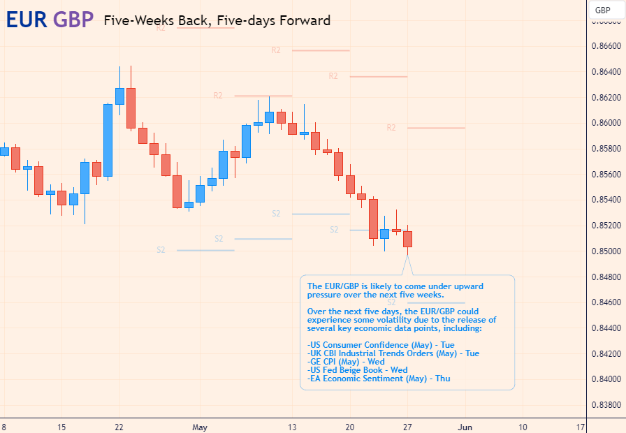 US Consumer Confidence (May) - Tuesday, 28 May: A weaker-than-expected reading could weigh on the USD, potentially leading to a rise in both the EUR and GBP and an increase in the EUR/GBP.