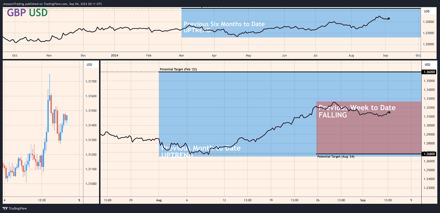 A thesis for the GBP/USD pair to climb during the upcoming week is based on the potential for a weaker US dollar. This could occur if the upcoming US jobs report for August, scheduled for release on Friday, September 6th, Week 36, shows weaker-than-expected job growth, reinforcing the view that the US economy is slowing and increasing the likelihood of a larger rate cut by the Fed. A weaker US dollar could support the British pound, leading to an appreciation of the GBP/USD pair.