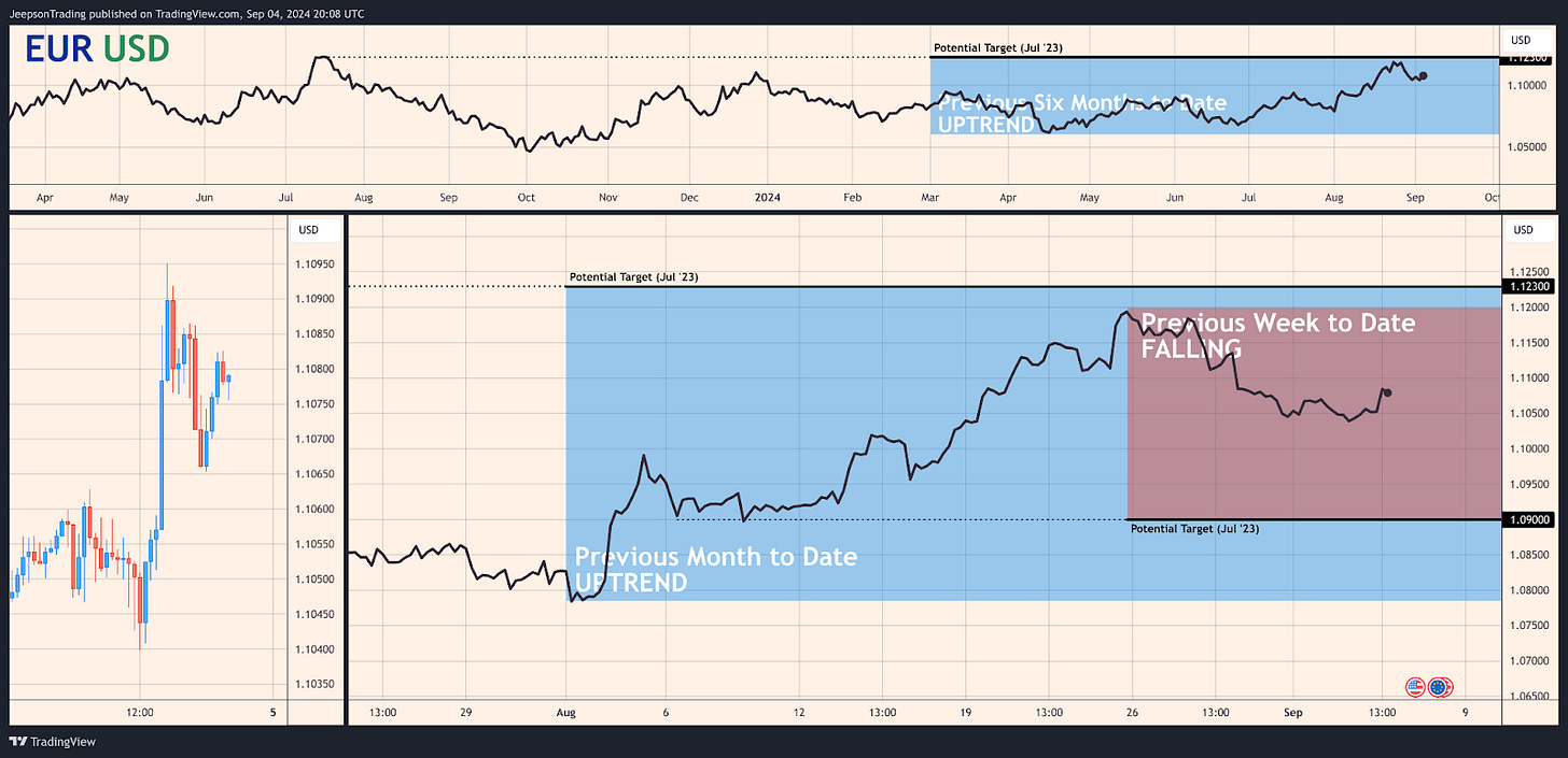 Friday, September 6th, Week 36: Eurozone GDP Flash Estimate QQ (Q2 2024). The preliminary estimate for Eurozone GDP growth in Q2 is 0.30%. If the actual result confirms the preliminary estimate, it could suggest that the Euro-Area's economic recovery remains fragile, potentially weighing on the euro and supporting the EUR/USD pair.