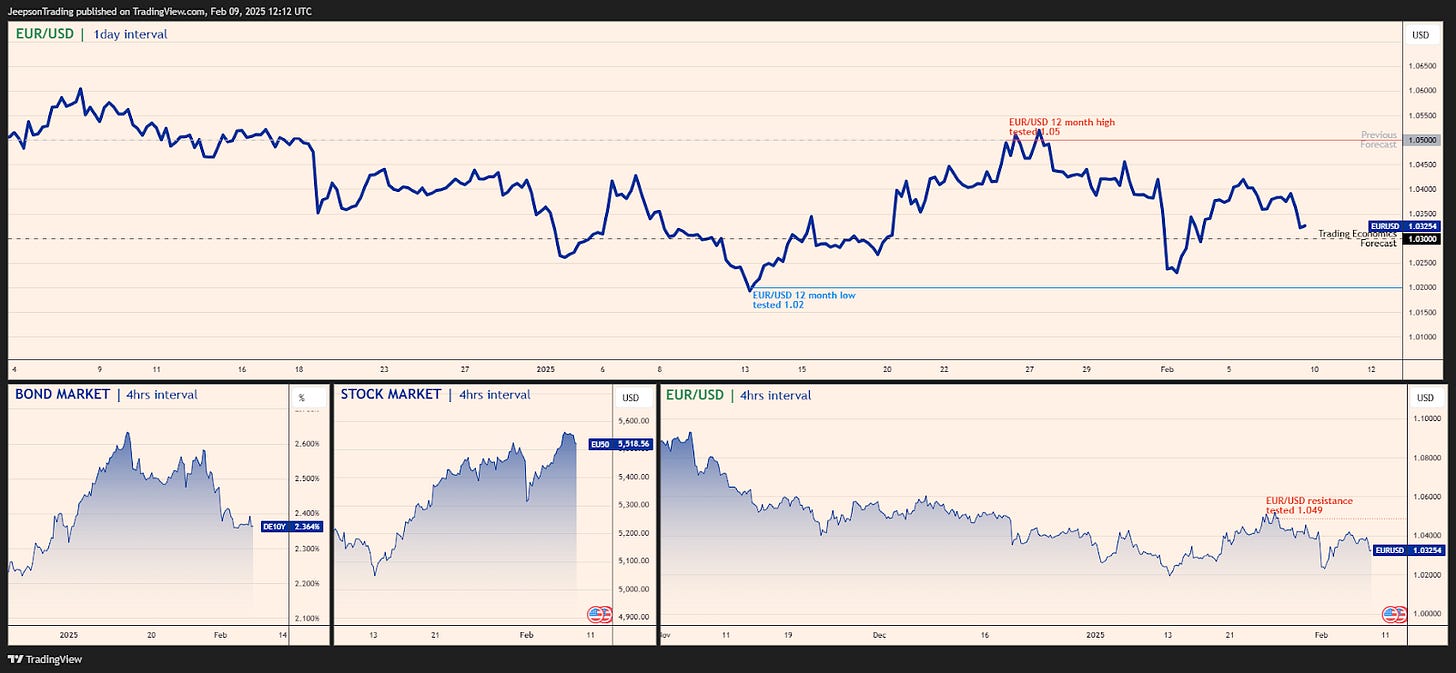 Welcome to this week's forex market outlook. The dominant theme we'll be tracking over the next ten days is the divergence in central bank policies. The RBNZ and BoE are expected to continue easing, while the Fed appears to be holding steady, at least for now. Key economic events tied to this theme include the RBNZ rate decision on February 19th and several important data releases that could influence central bank policy.