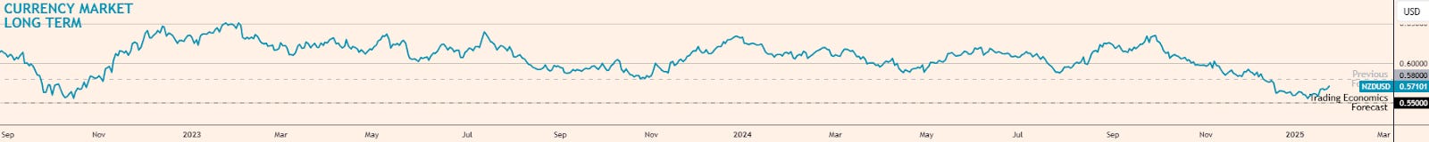 Over the past six weeks, the NZD has been the worst-performing major currency, driven by the RBNZ's dovish stance and the deteriorating economic outlook. The past ten days saw the NZD experience some volatility, initially strengthening against the USD on the back of a weaker greenback and China holding its loan prime rates steady. However, the currency weakened later in the week, influenced by concerns over President Trump's trade policies and their potential impact on China, New Zealand's largest trading partner.