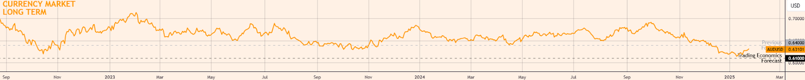 The Australian Dollar (AUD) maintains a Weak fundamental rating and a Bearish sentiment outlook. The currency faces multiple headwinds, including a cautious Reserve Bank of Australia (RBA), weak domestic economic data, concerns about a potential slowdown in China (a key trading partner), and a strong US dollar. The looming threat of US tariffs under the incoming Trump administration adds another layer of complexity.