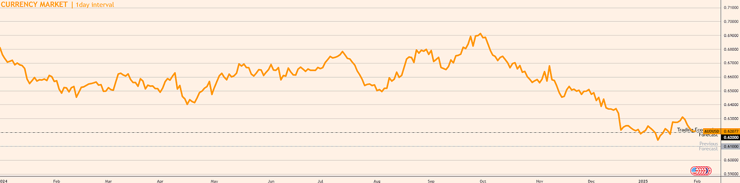 The AUD got a brief lift from USD weakness, but the global risk-off mood and the prospect of RBA easing quickly brought it back down to earth. That soft Q4 inflation print on the 29th (2.4% YoY) has only strengthened the case for a rate cut.